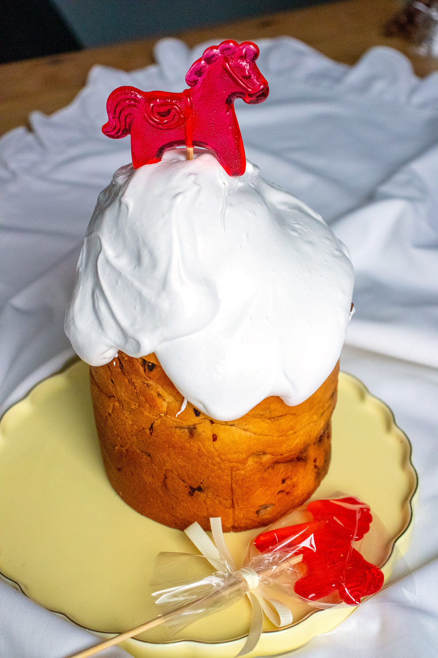 Цей карамельний коник — не просто прикраса, а маленька історія з дитинства, яка оживає на вашій пасці. Прозорий, золотистий льодяник із ніжним блиском додає святу особливого шарму та створює відчуття справжнього дива.