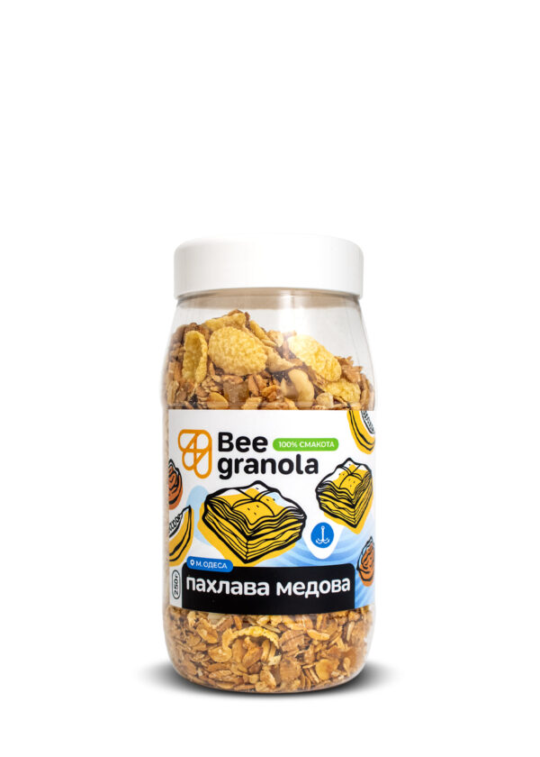 (23%) мед натуральний, (19%) пластівці пшеничні, (19%) пластівці вівсяні, (19%) пластівці ячмінні, (8%) волоський горіх, (4%) кукурудзяні пластівці глазуровані з медом, (4%) диня, (4%) масло кокосове, (3%) пластівці мигдалеві.